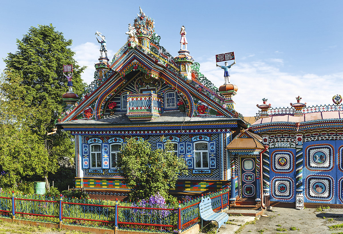 В конце прошлого века по итогам конкурса деревянного зодчества этот дом, расположенный в селе Кунара, был признан лучшим в России. И до сих пор уникальный особняк продолжает притягивать восхищенные взгляды, а многие специально приезжают в небольшое село, чтобы увидеть это чудо своими глазами! Построил этот дом сельский кузнец Сергей Кириллов, и получился особняк у него нарядный, пряничный, со множеством узоров, башенок, фигурок… Есть тут и птицы, и кони, и множество цветов. Одним словом, диво дивное, прекрасный образец наивного искусства. Посмотреть и сфотографировать его можно бесплатно.