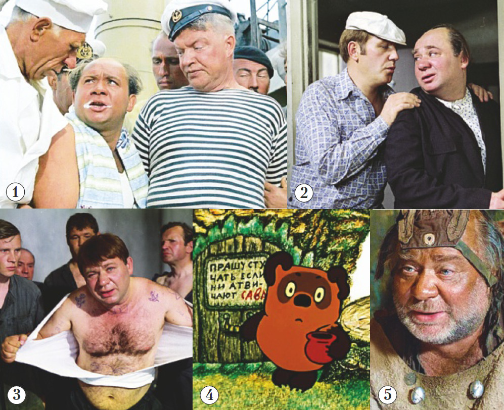 Разве что Доцент из «Джентльменов удачи» – неприятная личность. Показать такого персонажа – задача архисложная, тем более параллельно надо сыграть и доброго воспитателя Трошкина. Нечасто актеру с застенчивой мягкой улыбкой и магнетическим тембром голоса, который вызывал у людей только приятные эмоции, попадались отрицательные герои. Даже Карлсона не доверили озвучить – нужна была какаято хулиганистость. Зато в образ Винни-Пуха Леонов вписался идеально (и внешне тоже). Чтобы вышло еще забавнее и энергичнее, голос актера ускорили на 25%.