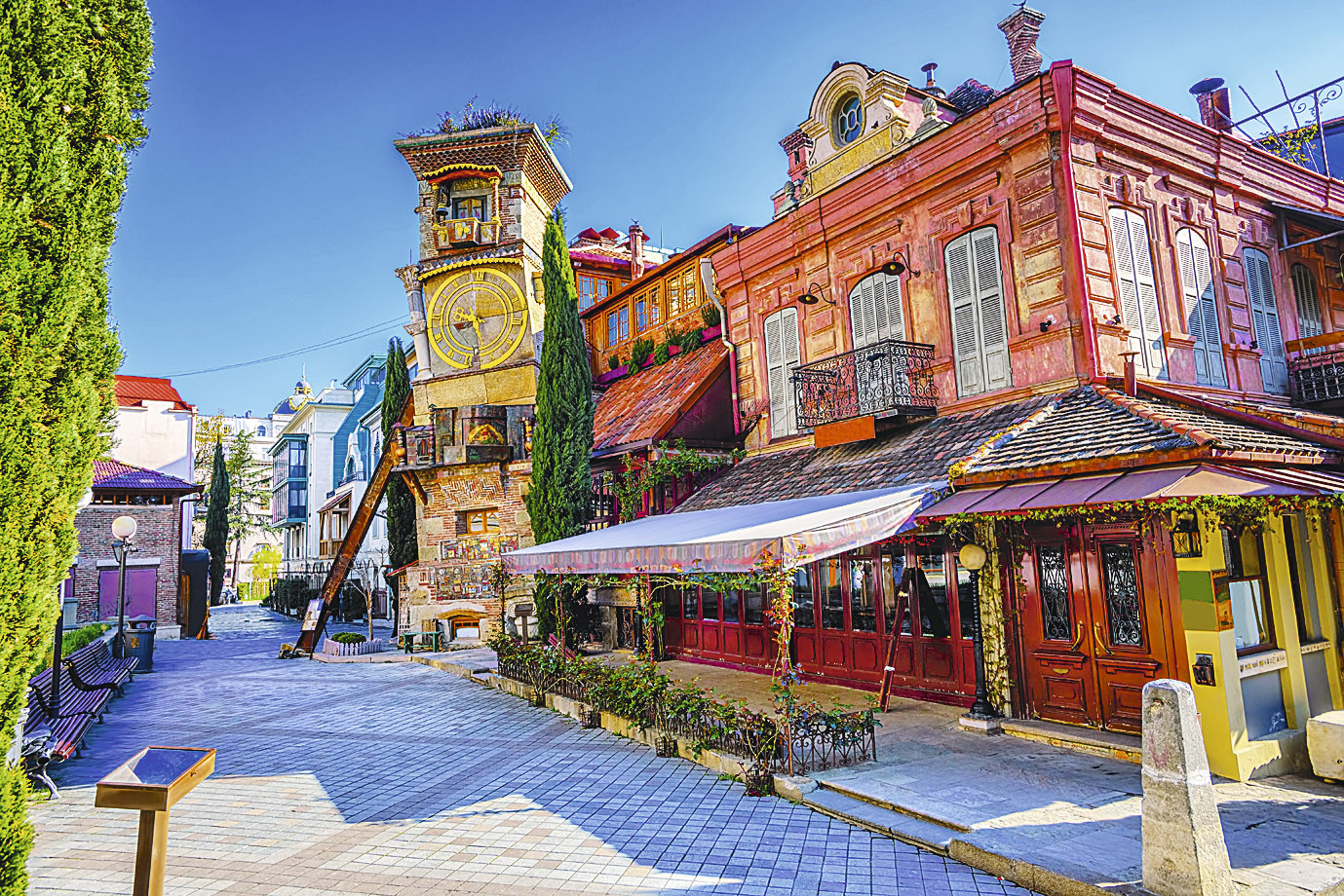 Знакомство с Грузией стоит начинать со столицы, а знакомство с Тбилиси – со Старого города! Поброди по мощеным улочкам, дойди до раскосой башни с часами, похожей на дом сумасшедшего шляпника из «Алисы в стране чудес» – это знаменитый театр кукол Резо Габриадзе. А в конце полного прогулок дня хорошо снять усталость в серных банях в районе Абанотубани.