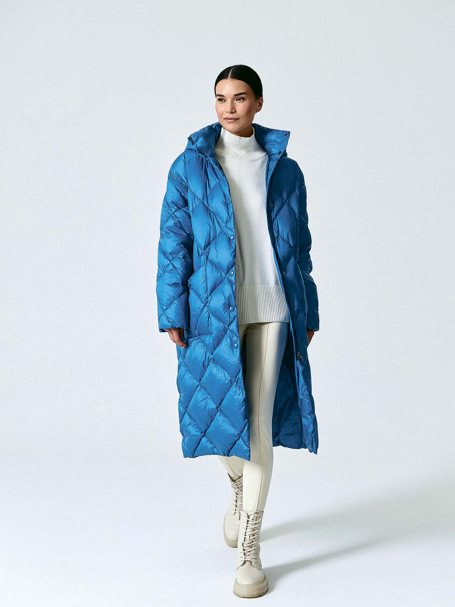 Какой вид застежки предпочитаешь: пуговицы, замок или достаточно пояса и кроя на запах? Взгляни на остальные вещи в гардеробе. Если у тебя много свитеров и водолазок с горлом, можешь позволить себе более распахнутые вариации пуховика с воротником. Если любишь тотальное утепление, то обрати внимание на парки с замком вокруг капюшона. Так, в случае необходимости, сможешь высовывать на улицу только нос.