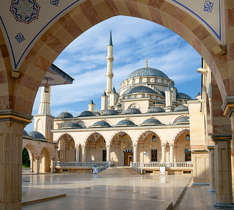 Мечеть имени Ахмата Кадырова, «Сердце Чечни», построена в классическом османском стиле по образу Голубой мечети в Стамбуле. Работать над святыней пригласили лучших турецких мастеров. Снаружи в отделке храма использовали травертин, привезенный с побережья Мраморного моря.