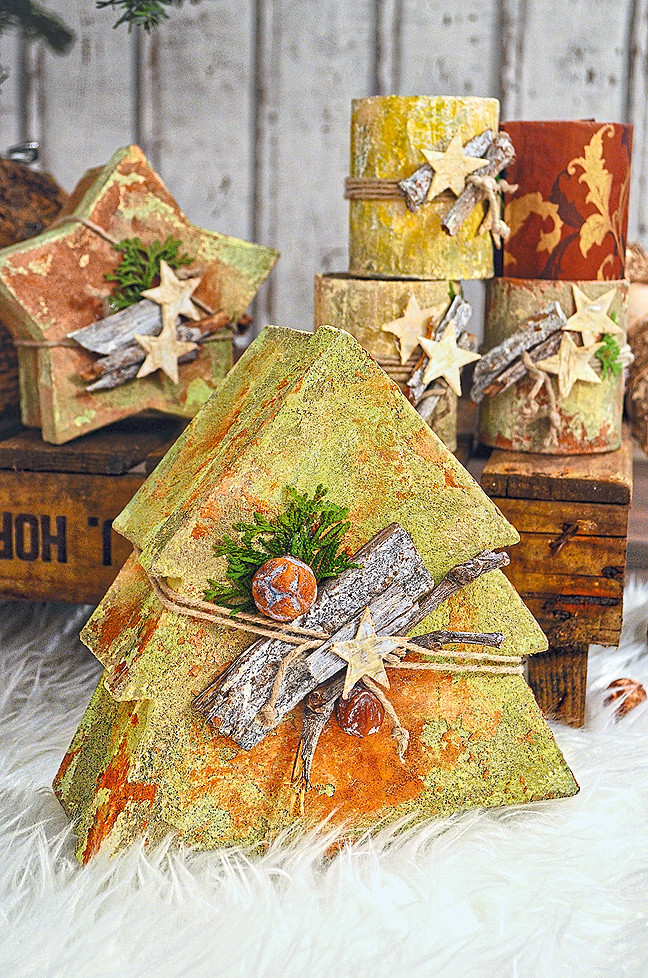 Новогодние штампы продаются в магазинах для творчества – чаще всего в отделах для скраббукинга. Но простой штамп (например, елочку) можно сделать и самостоятельно – как из мягкого пластика, так и из природных материалов, например, половинки картофелины.