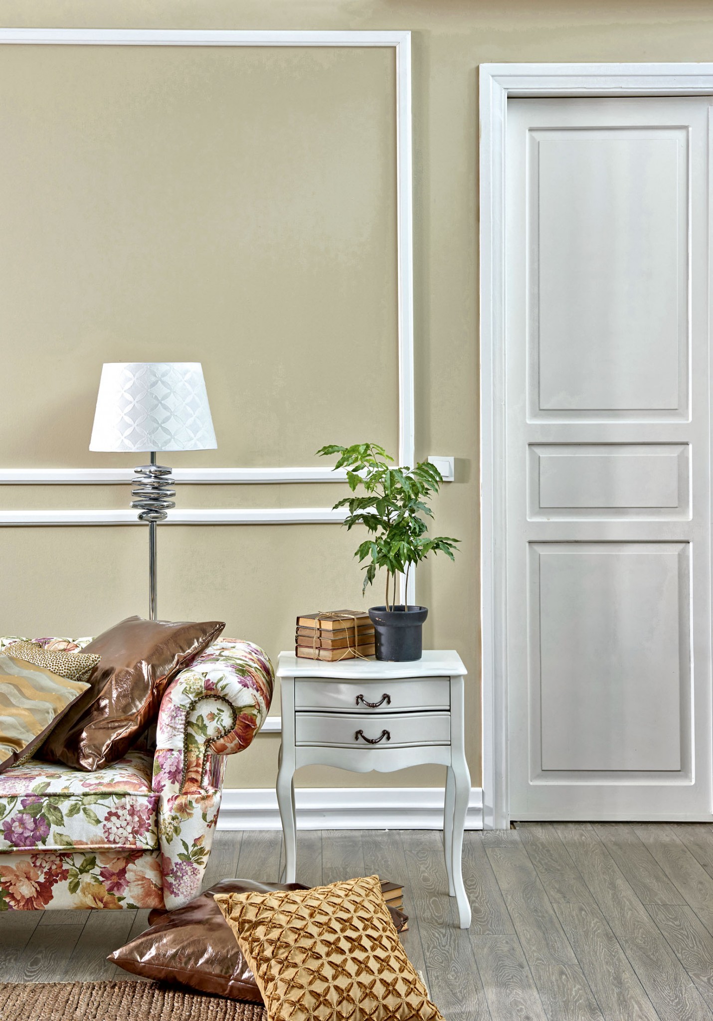 Этот прием идеально подходит для классических интерьеров, когда корпусную мебель, например, кухонный гарнитур или стеллажи в гостиной, а также двери изготавливают в едином стиле. Ориентироваться на оттенок мебели стоит, если только ты уверена, что не будешь ее менять в ближайшие лет 10–15.