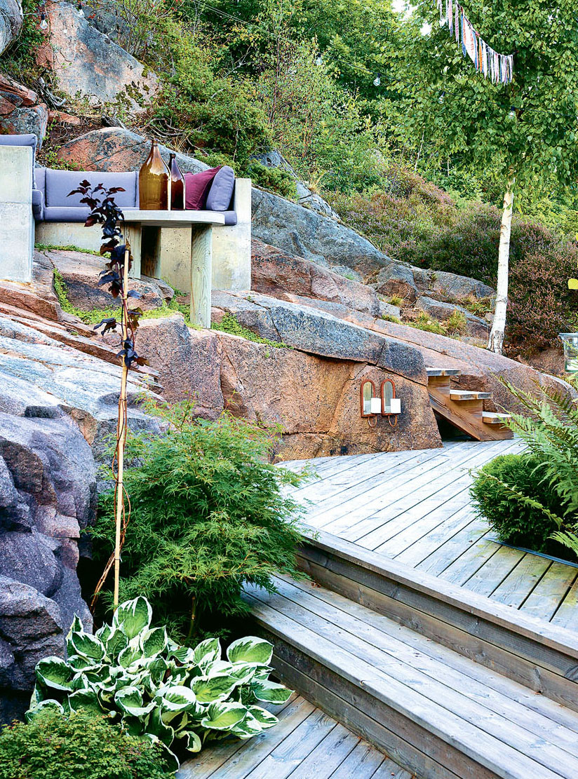 Эта композиция хорошо смотрится на участке с уклоном или неровной поверхностью земли. Сначала устанавливаются ступени для опоры – благодаря им на горке будет несколько ярусов. В стенках между «этажами» лестницы делают отверстия, в которые высаживают цветы. Боковые части ступеней украшают декоративными камнями и растениями.