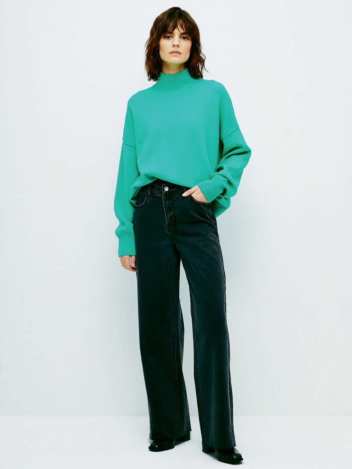 Если ты предпочитаешь придерживаться нейтральных тонов во всех остальных вещах, то, когда дело доходит до вещей крупной вязки, позволь себе более смелый оттенок. Попробуй зеленый, фиолетовый или желтый, чтобы оживить свой образ. Кстати говоря, он сможет пригодиться тебе и для уличных стритстайлов: просто сними его и повяжи как шарф поверх пальто.