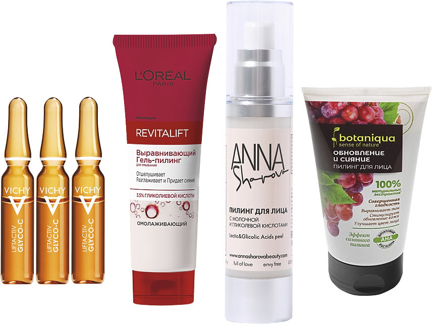 Кислоты в составе пилингов можно разделить на AHA, BHA, PHA (альфа-, бета- и полигидрокислоты). К первым относятся молочная, миндальная, гликолевая, и они хорошо работают с нормальной кожей. Используются в антивозрастном уходе. Внимание! Рекомендуемая домашняя концентрация – до 10%.