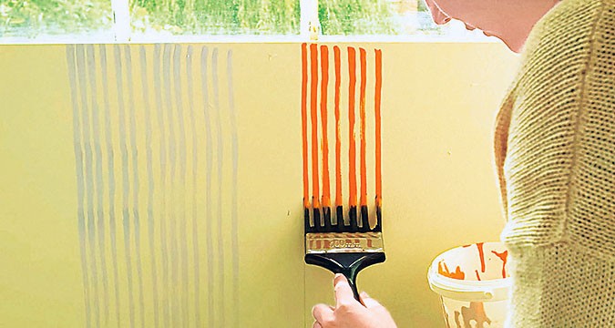 2. Обмокни губку в краску, нанеси на штамп и плотно приложи его на указанную точку. Продолжай до тех пор, пока не получишь на стене нужный орнамент.