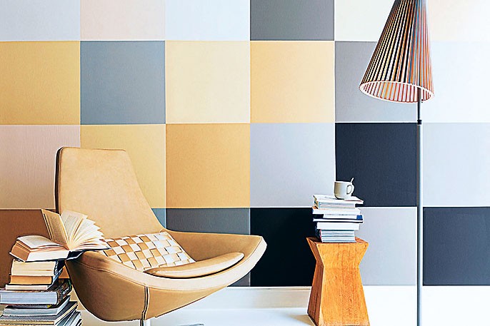 ПЭЧВОРК. Линии размечают карандашом. Перед покраской по краям квадрата пускают малярный скотч.