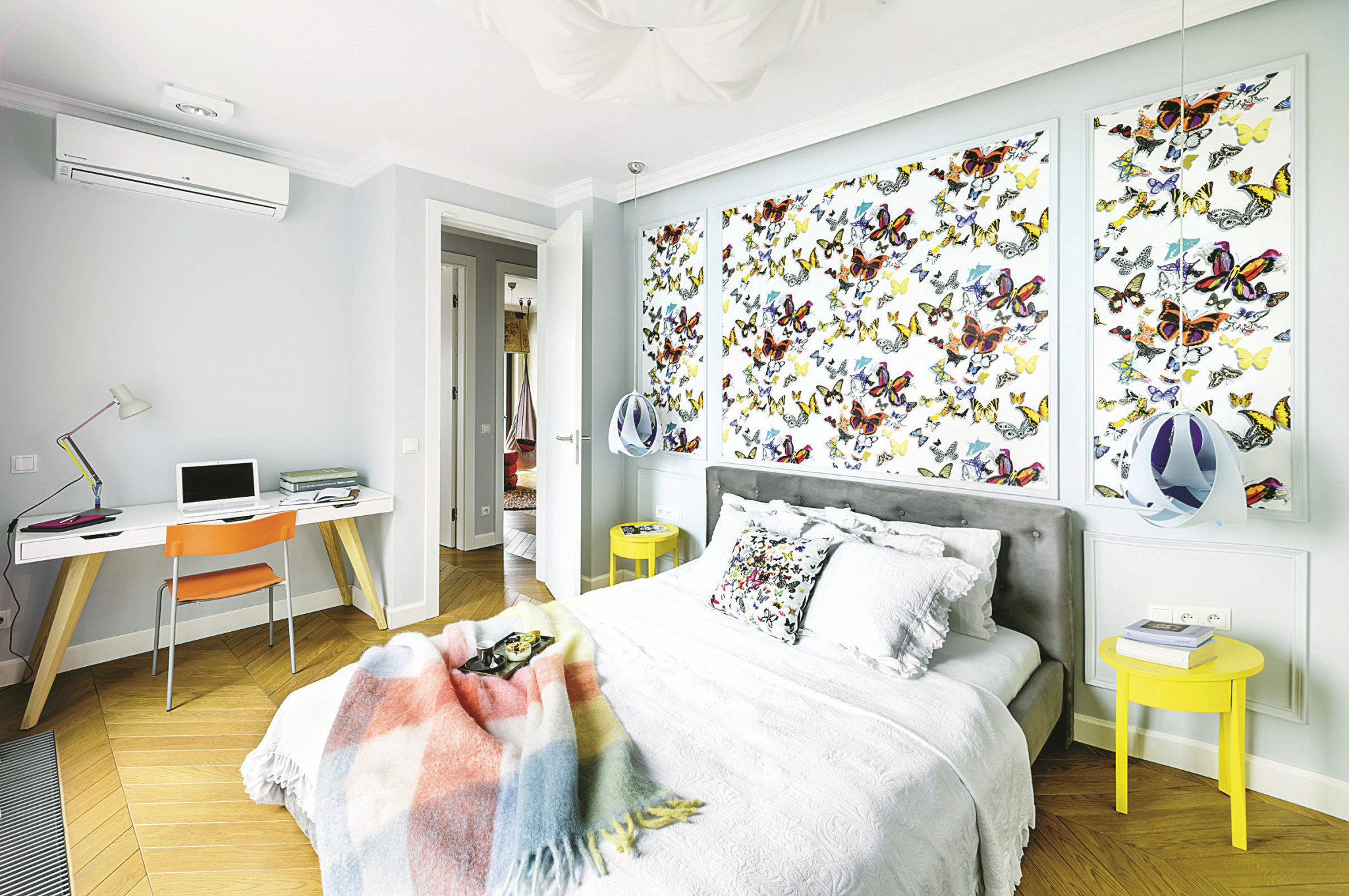 Игра контрастов. Если ты не можешь сделать выбор между светлыми и темными оттенками однотипных обоев, смело покупай оба. Использование контрастных цветов – еще одно популярное дизайнерское решение. Наклей их на противоположные стены, так ты визуально вытянешь пространство и добавишь динамики в интерьер. Еще вариант – используй контрастные обои для разграничения зон в одной комнате.
