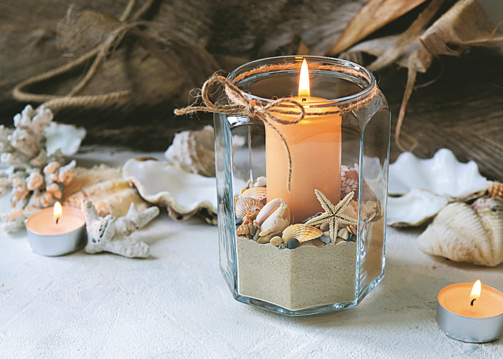 - Добавь в декор крупные ракушки и галечные камешки с моря.