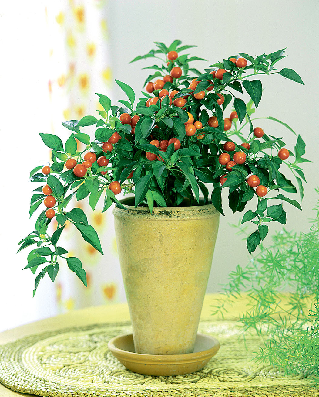 Вечнозеленое комнатное растение со слегка волнистыми темно-зелеными листьями. У паслена небольшие белые цветки, но украшают растение не они, а красные округлые плоды, напоминающие миниатюрные помидоры. Паслен не стоит держать в доме, где есть маленькие дети. Малыши, которых привлекают яркие и красивые плоды, могут попробовать их на вкус, прихватив и листья. А в них содержится сильнодействующий яд, который вызывает расстройство пищеварения и кишечные колики.