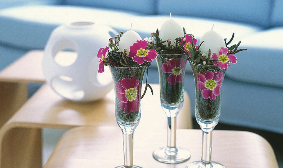Расположи в центре стола живые весенние цветы.