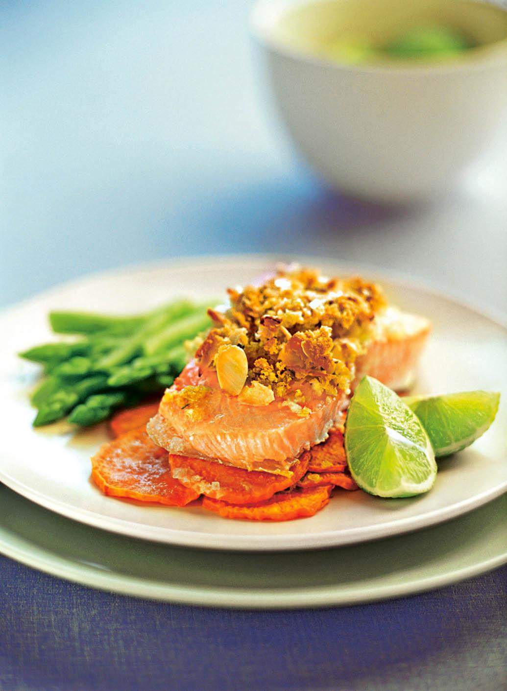 Приготовление: в неглубокой тарелке смешай миндальную крошку, паприку, перец и отставь в сторону. Филе или стейк рыбы промой и обсуши бумажным полотенцем. Слегка подсоли. Положи рыбу на противень и слегка сбрызни растительным маслом. Сверху посыпь смесью из миндальной крошки и специй. Запекай в духовке в течение 15–20 минут. Подавай рыбу с запеченной в духовке или тушеной морковью, любой зеленью, ломтиком лимона или лайма.