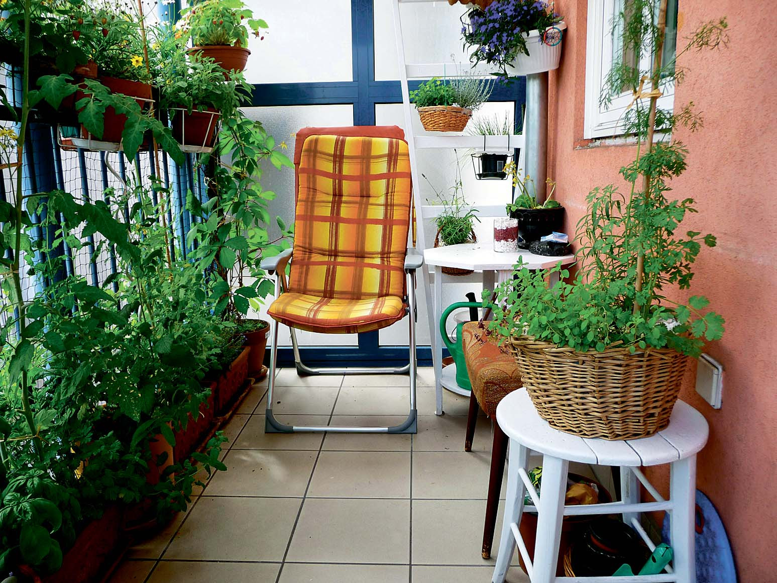 Высади рассаду огурцов в цветочные горшки (только не забудь сделать опору – растения должны виться вверх), а также посей редис, салат, петрушку, лук. Все это не только порадует вкусом, но и сделает балкон еще более зеленым, ярким и летним.