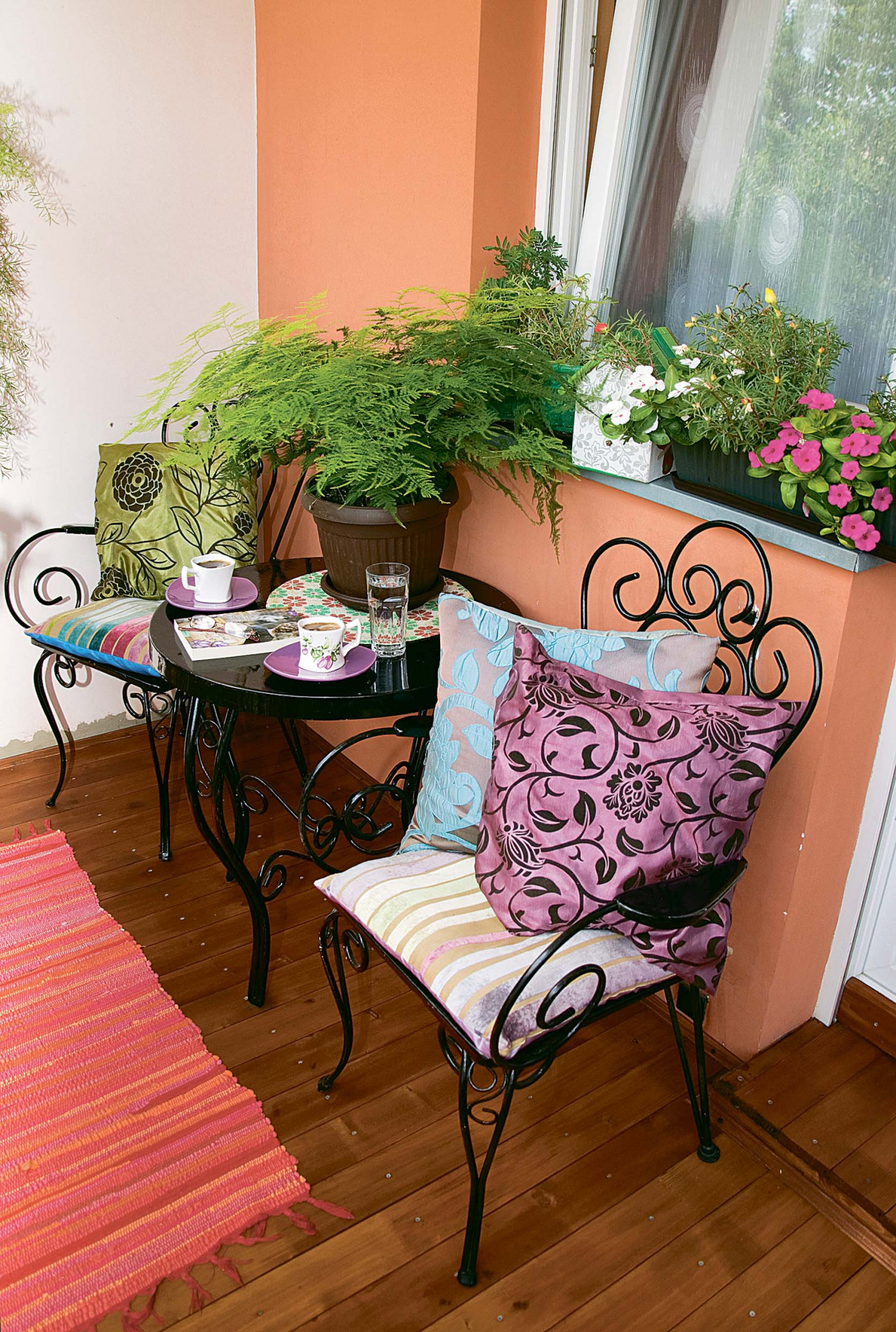 Душевные посиделки. Твоя мечта: чашка кофе утром и бокал вина после ужина с видом на любимый город? Тогда позаботься о столике и удобных креслах.