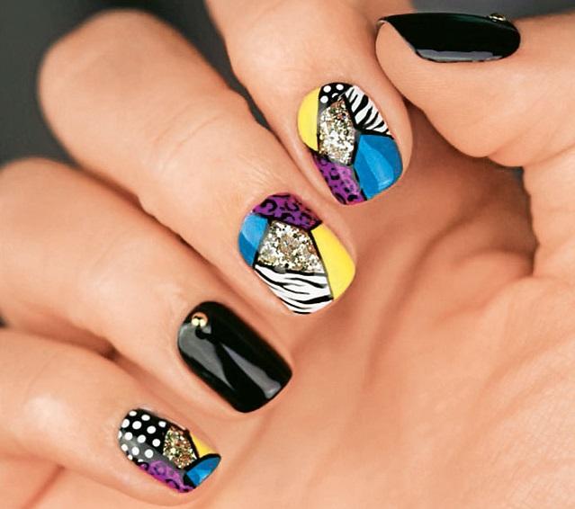Лоскутная техника теперь актуальна и в маникюре. Выбери 5–6 оттенков лаков и придумывай с ними свои дизайны.