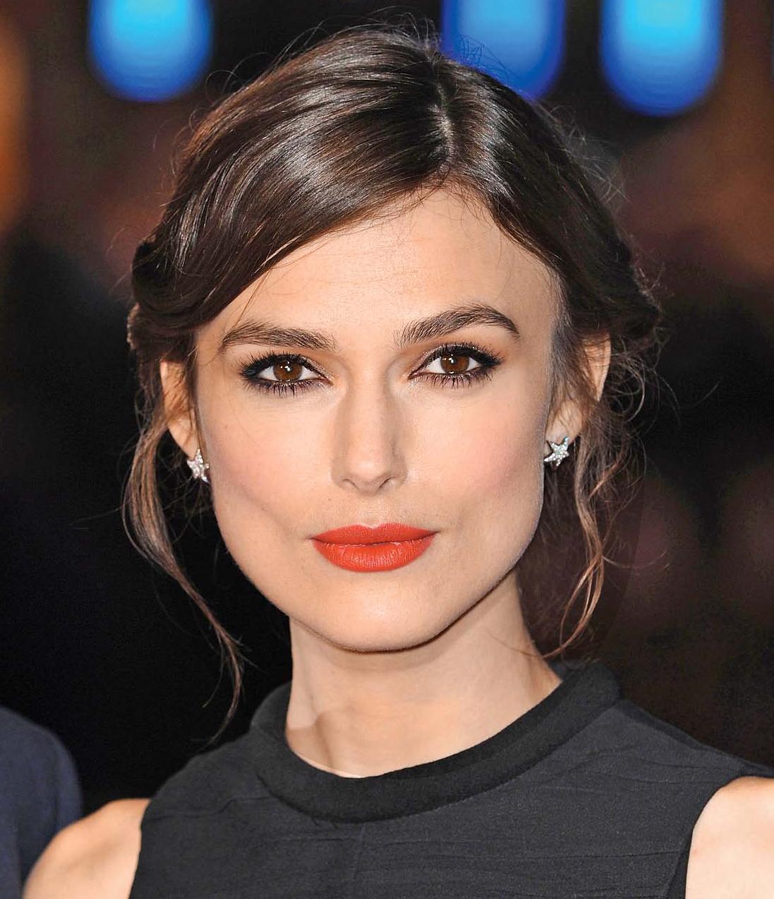 Сочетание черного и красного – идеальное для брюнеток. Растушуй по ресничному контуру черный мягкий карандаш, создавая легкую дымку. Нанеси в два слоя черную тушь. Обязательно подкрась брови тенями, добавляя выразительности глазам. Губы выдели красно-оранжевой матовой помадой, предварительно сделав контур карандашом. Правда, такой оттенок может визуально усиливать желтизну эмали зубов. Если у тебя есть такая проблема, выбери темно-красную помаду.