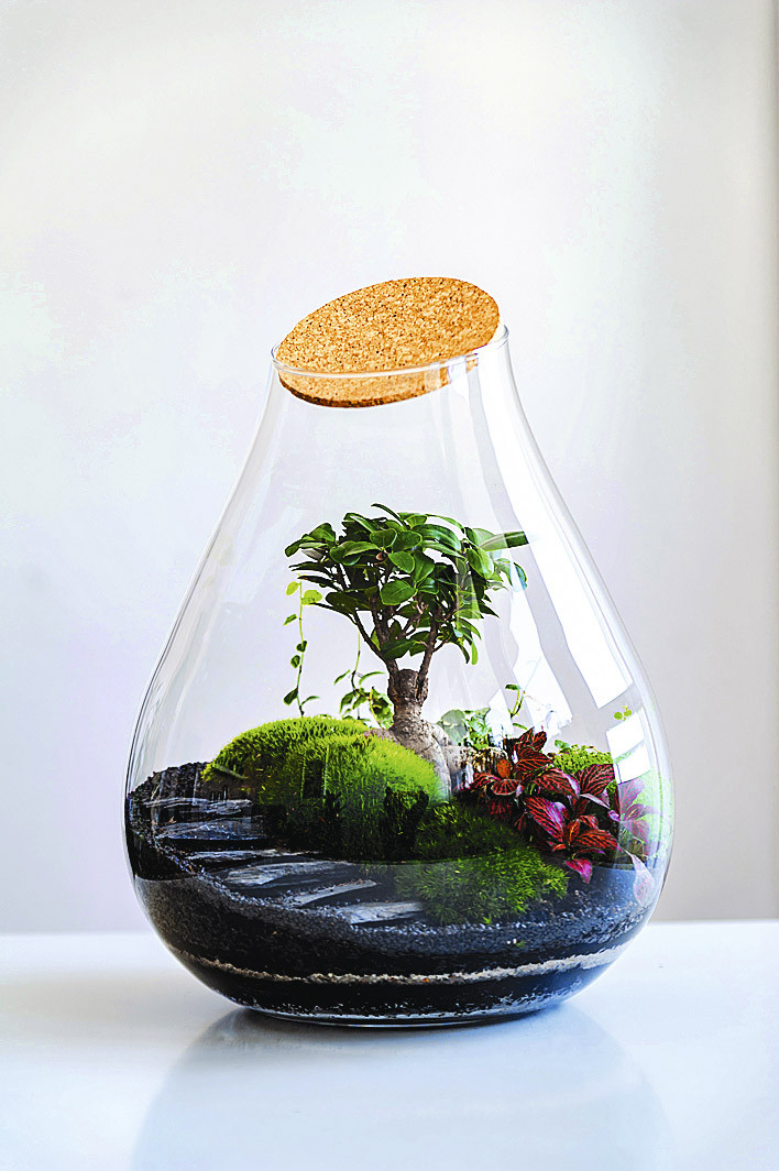 Закрытые. Вырастить изолированную экосистему – задача для опытного флориста. Прежде чем закрывать садик от внешнего мира, необходимо тщательно продумать все создаваемые внутри условия, а затем правильно высадить растения. Запаянный или плотно закрытый флорариум не рекомендуется открывать слишком часто, только по необходимости. Чем реже, тем лучше. Микроклимат внутри закрытой емкости может различаться – чаще всего бывает тропическим или горным.