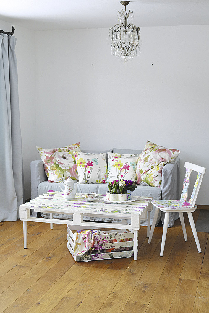 - Текстиль своими руками. Сшей самостоятельно наволочки, шторы или скатерти из недорогих тканей с цветочным принтом. Такие вещи будут прекрасно выглядеть в интерьере шебби-шик.
