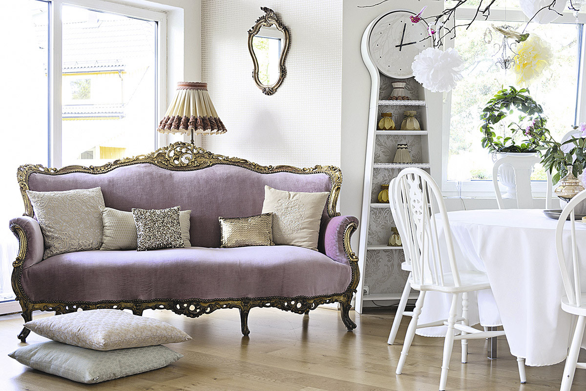 - драпировка и оборки – шторы, покрывала и подушки с тонкими текстурами завершают образ.