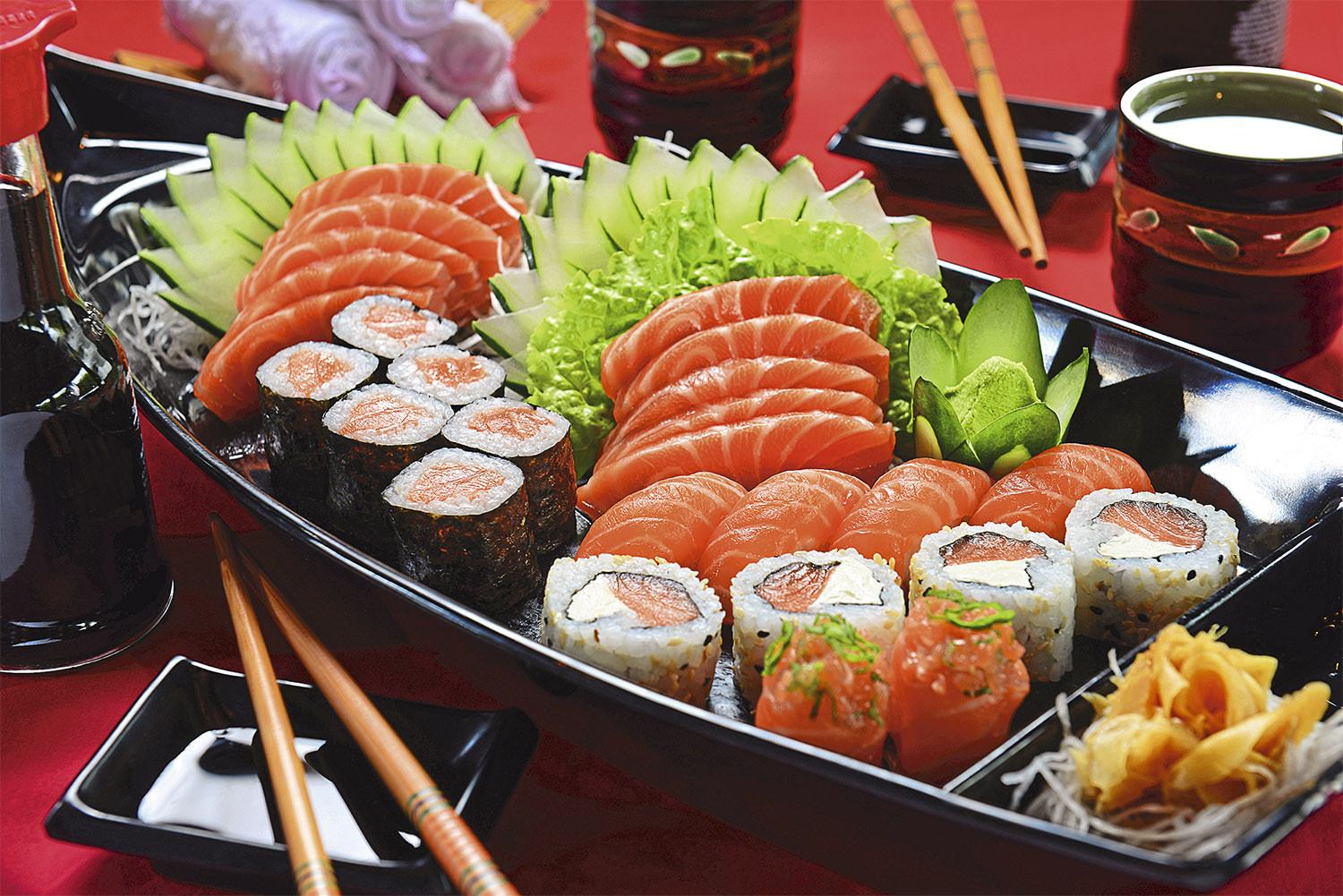 Суши – целая философия, в Японии существует много школ приготовления этого блюда. Сет из суши наполняет желудок, создает праздник для рецепторов, улучшает настроение, при этом тяжести от переедания нет.