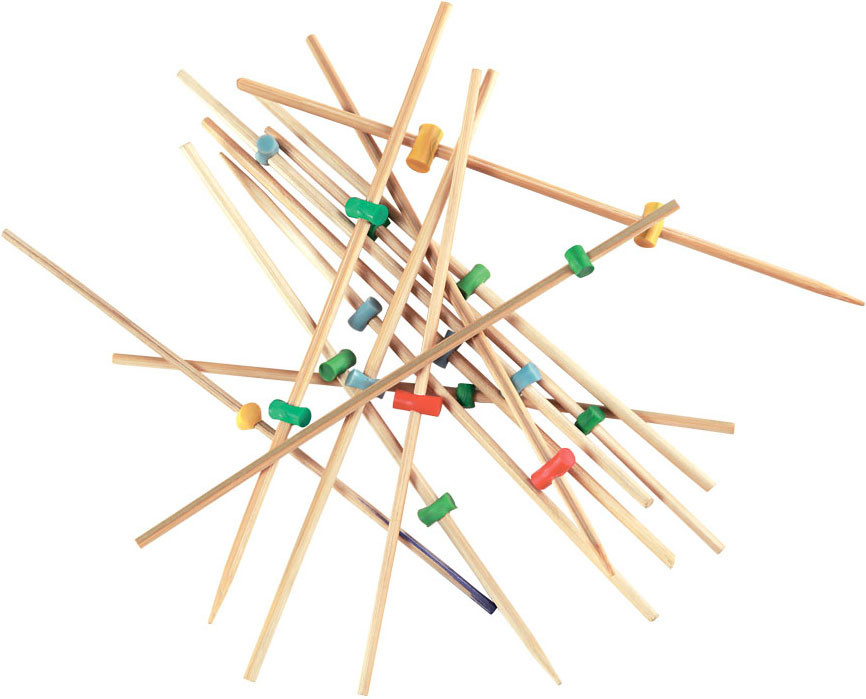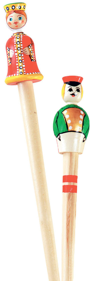 На деревянные шпажки насади кусочки обычного ластика. Палочки-бирюльки готовы! Теперь высыпаем их горкой на стол. Игроки по очереди берут одну палочку так, чтобы не сдвинуть остальные. Удалось – забираешь палочку себе. Выигрывает тот, у кого в конце больше всего бирюлек.