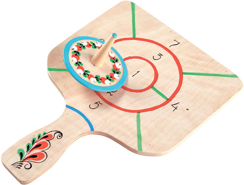 Вырежи из картона круг диаметром 5 см. Раскрась или обклей его цветной бумагой. Аккуратно проколов центр, вставь половину зубочистки. Готово! Можно просто крутить юлу на полу, но сложнее – вертеть ее на дощечке: справа налево, вперед-назад, затем по кругу.