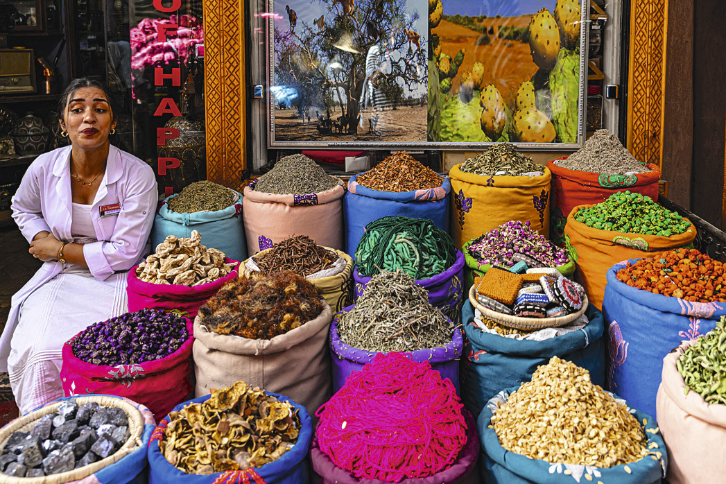 Когда в преддверии сумерек лучи солнца касаются минарета мечети Кутубия, буйство красок Марракеша сложно описать словами. 77-метровый символ древнего города сияет золотом. Цвет небес переходит от темно-синего к яркорозовому, сгущающемуся в лиловый. Затем внезапно наступает темнота – и в Медине, старом городе, на центральной рыночной площади Джемаа-эль-Фна начинается волшебство… Каждый вечер фокусники, акробаты, заклинатели змей устраивают своего рода варьете под открытым небом, развлекая праздную публику. Более сотни лет Марракеш в фаворе у обеспеченной публики и творческих людей. Французский художник Жак Мажорель купил рядом с Мединой (старым городом) небольшой участок, где построил виллу и разбил сад с экзотическими растениями. Раскидистые пальмы, огромные кактусы, заросли бамбука очень гармонично сочетаются с постройками кобальтового цвета. Синий мажорель (так теперь называют этот цвет во всем мире) был любимым и у знаменитого Ива Сен-Лорана. Именно он купил виллу после смерти первого владельца. Сегодня сад, отпраздновавший 100-летний юбилей в прошлом году, открыт для посещения.