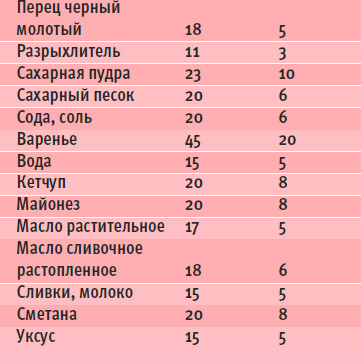 - Густые жидкие продукты, например, сметану, джем или мед, накладывать лучше с помощью ложки, также заполняя стакан до края.