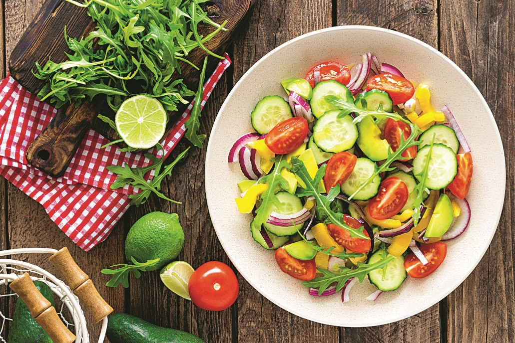 Следи, чтобы в твоем рационе преобладали овощи (огурцы, помидоры, стручковая фасоль, кабачки, морковь, салат листовой, зелень) и фрукты (кроме бананов и винограда).