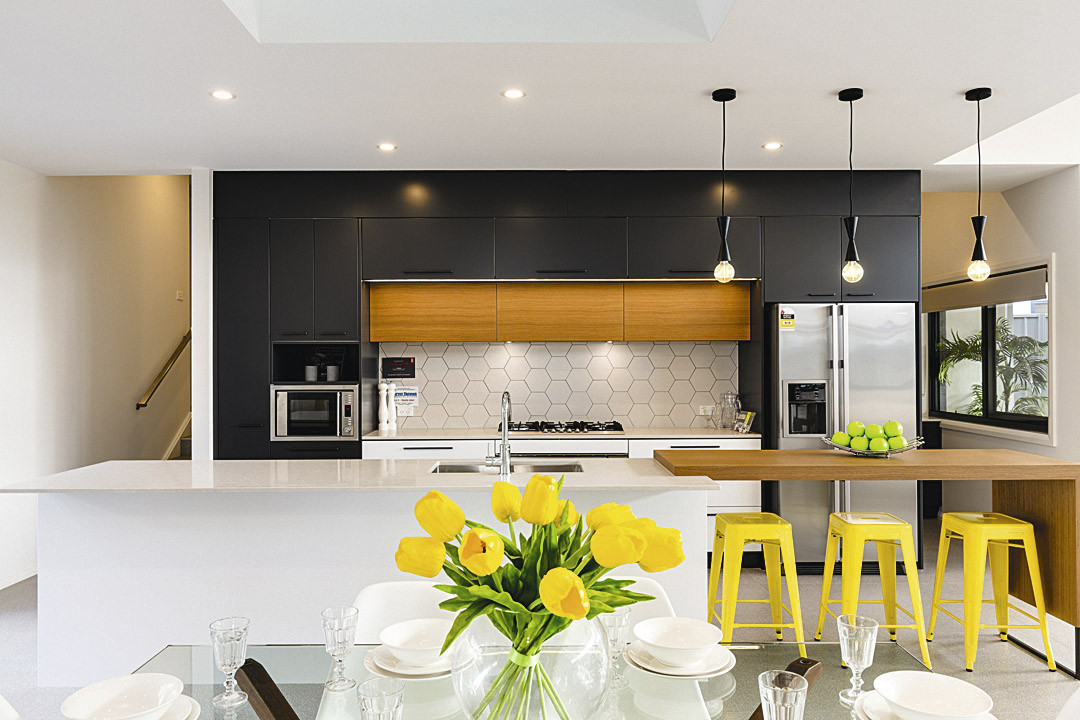 - Откажись от стульев со спинками в пользу табуретов, которые можно задвинуть под стол.