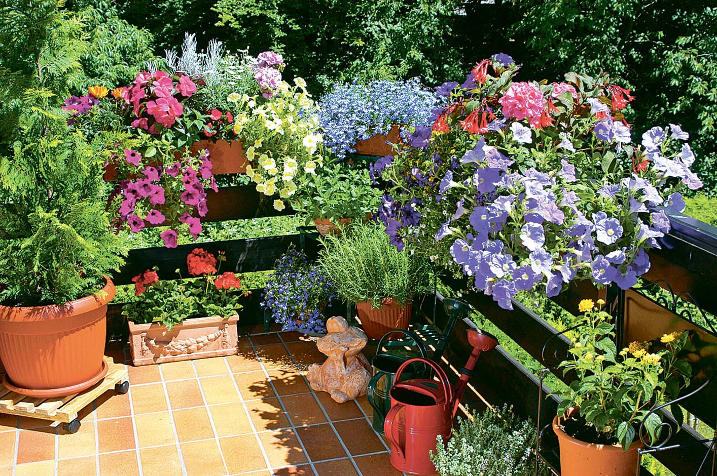 Лучше всего для балконных растений подходят деревянные ящики или неглазурованные глиняные горшки.