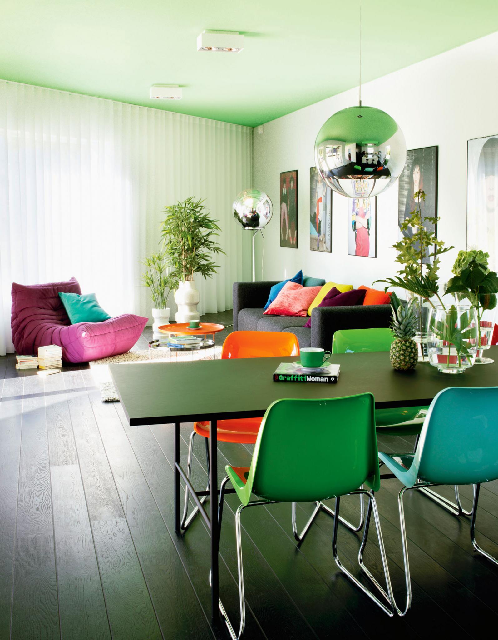 Яркий цвет – смелый ход. Разве потолок непременно должен быть белым? Нет! Безусловно, нельзя отрицать, что светлые цвета придают помещению объема. Но с другой стороны, другие, более яркие и дерзкие, создают невероятную атмосферу, добавляют живости, экспрессии.