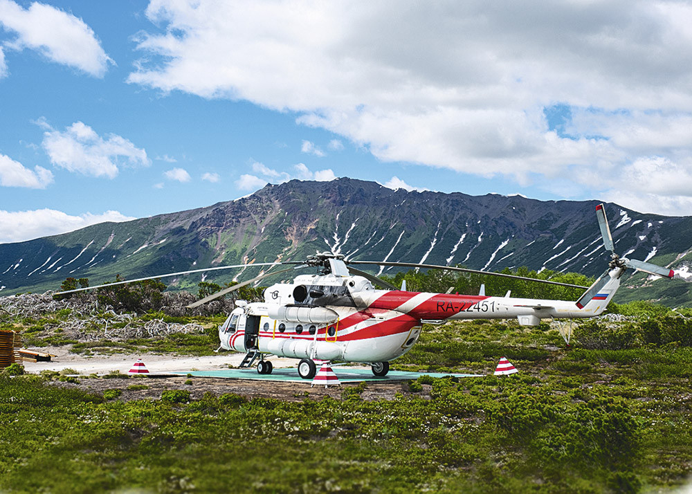 В долину доставляют на вертолете. Летит «птичка» примерно полтора часа, а потом приземляется на одной из площадок недалеко от туристического центра.