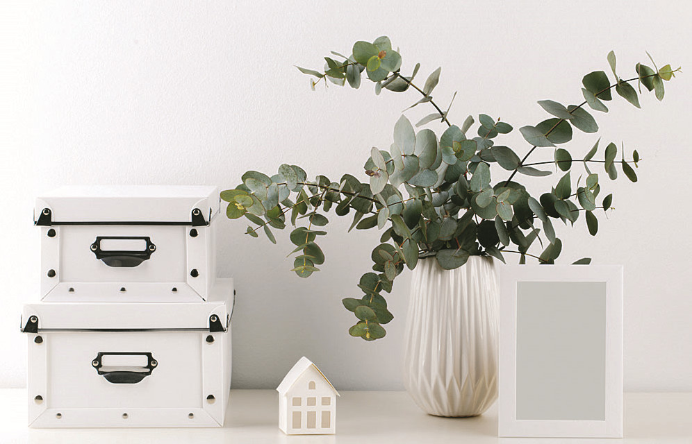 Подойдет для минималистичных интерьеров. Он не только станет гармоничной частью декора, но и наполнит дом приятным терпким ароматом, который благоприятно влияет на работу сердечно-сосудистой и нервной систем. Эвкалипт очень неприхотлив и не нуждается в особом уходе. Чтобы такой букет простоял до двух недель, достаточно просто подрезать концы стеблей и поставить букет в отстоянную или кипяченую воду.
