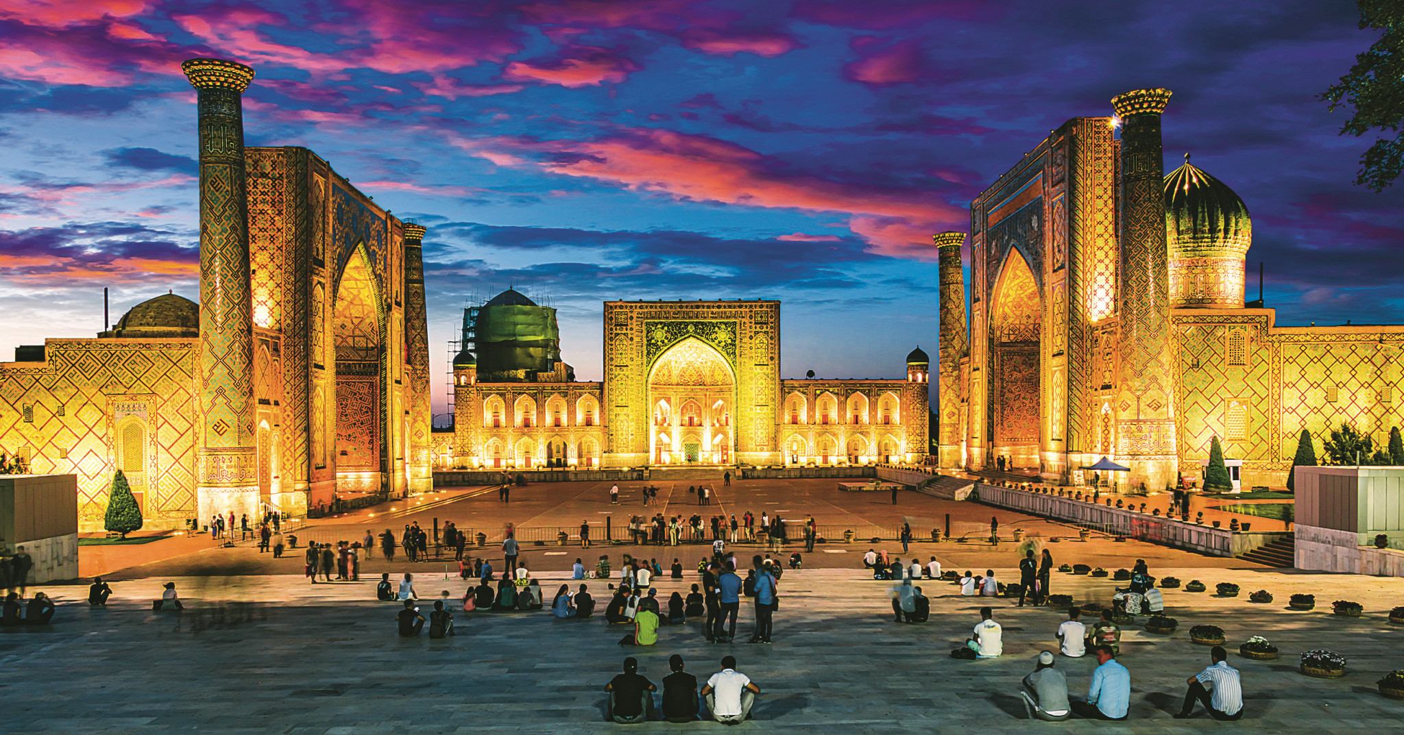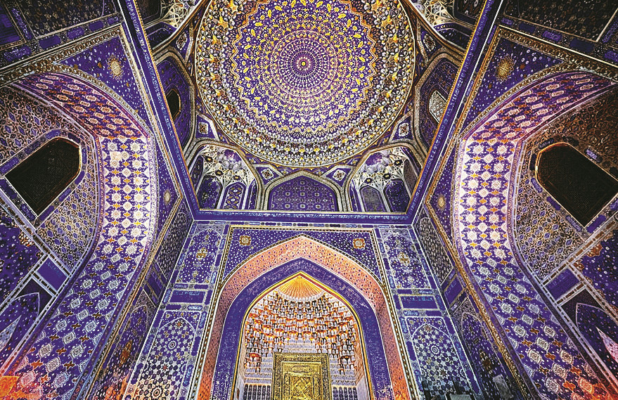 Да-да, в самую настоящую, об Аладдине с принцессой Будур и городе, где синева куполов медресе спорит с небом, мозаика переливается на солнце, словно драгоценные камни, а реальная история переплетается с легендами. Таким и предстает древний Самарканд, которому более 2500 лет. Он был частью Великого шелкового пути, столицей огромной империи Тамерлана, или Тимура, как его здесь называют. Великий полководец похоронен в мавзолее Гур-Эмир, который, есть такая версия, послужил источником вдохновения для строителей Тадж-Махала.