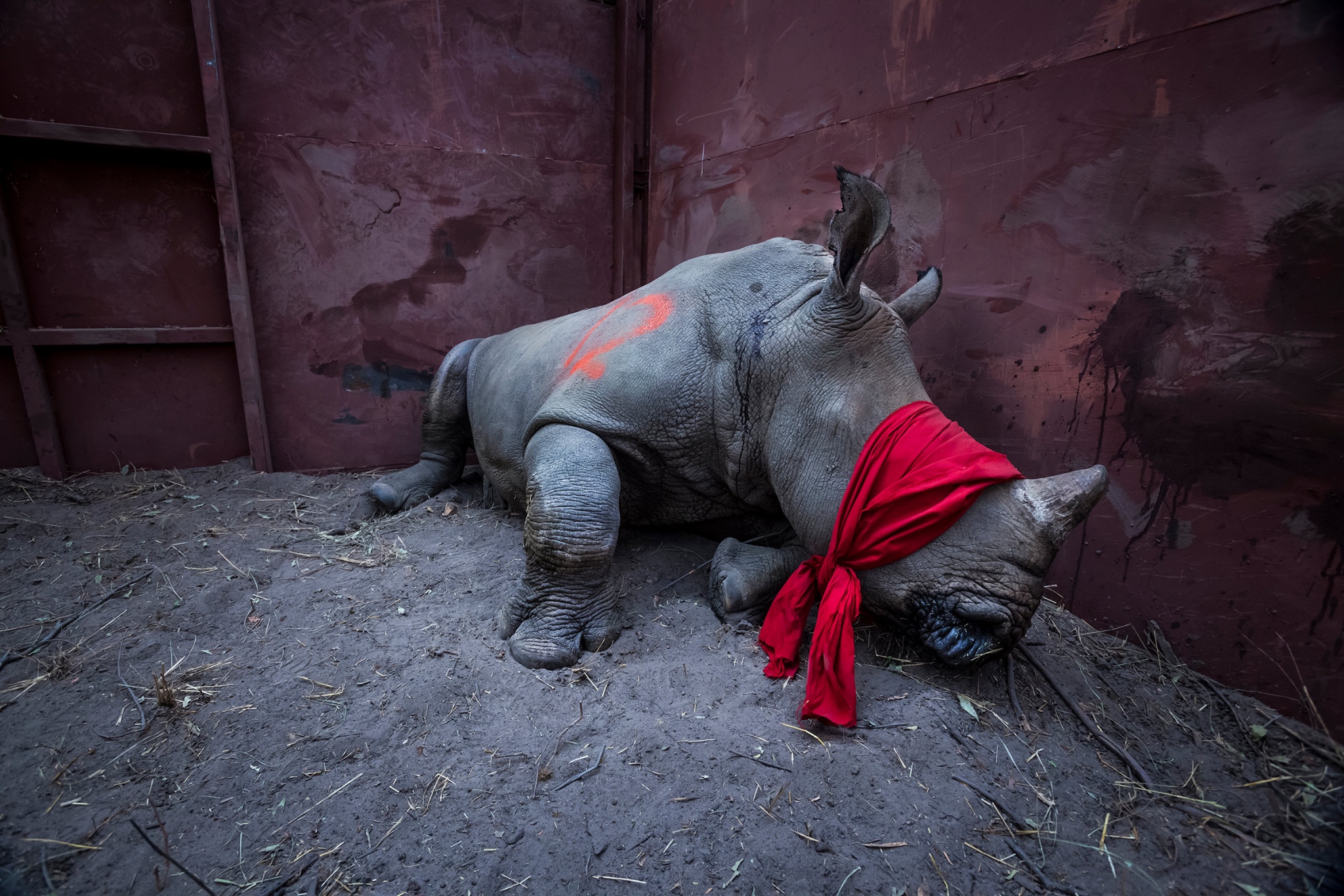Этот белый носорог с завязанными глазами вскоре будет выпущен на свободу в дельте реки Окаванго в Ботсване. Его вывезли из Южной Африки, чтобы защитить от браконьеров. Белые носороги находятся под угрозой вымирания. Их рога высоко ценятся во Вьетнаме и Китае за целебные свойства, стоимость достигает от 20 тысяч до 50 тысяч евро за килограмм.