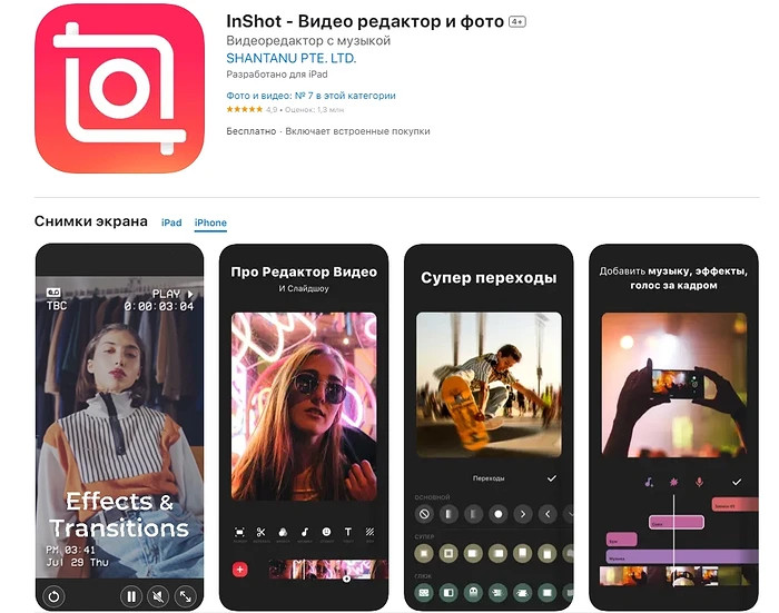 Чтобы появилась эта функция, надо нажать на крестик возле водяного знака. inShot — пожалуй, лучшее приложение для обработки видео на айфоне, если судить по количеству загрузок.