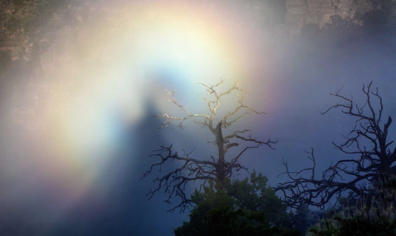 Что же на самом деле видели китайские монахи и немецкие охотники на ведьм? Современные ученые назвали это явление «глория». Оно возникает, когда мы смотрим с некоторого возвышения на туман или облака внизу, при этом со спины нас освещает солнце. В облачном мареве нам является наша собственная тень в виде размытого призрака с радужным нимбом вокруг головы. Ее пропорции искажены, контуры размыты, при этом она может произвольно двигаться из-за движения облаков. В общем, устрашающее зрелище, если ты, конечно, не буддийский монах.