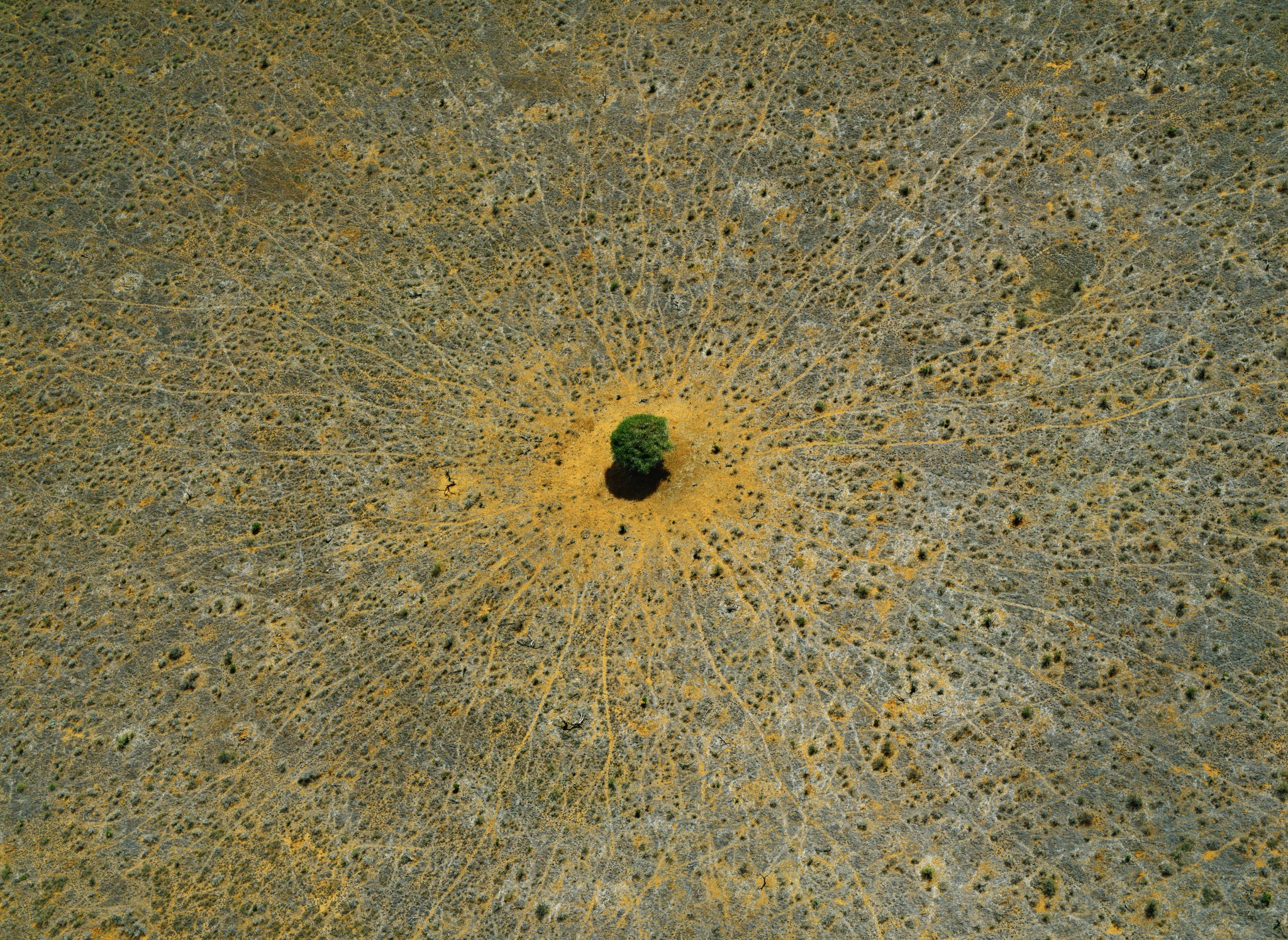 Тропинки, протоптанные зверьем за месяцы и годы хождения к Древу жизни – это те самые желтые прожилки на фото. Помнишь стихи «Добрый доктор Айболит! Он под деревом сидит. Приходи к нему лечиться. И корова, и волчица»? Наверняка подступы к дереву Айболита выглядели точно так же.