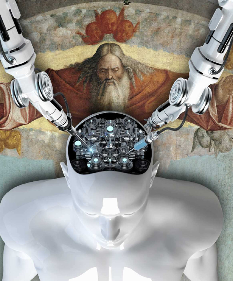Потому что чем стремительнее идет прогресс, тем тяжелее поспевать за ним религиям, которые в массе своей придумывались давным-давно, когда еще не было даже Википедии, а, скажем, версия о том, что дождь на землю льют маленькие феи из больших ночных горшков, воспринималась вполне реалистичной. Сейчас же комплекс знаний человека о мире настолько противоречит содержимому любых священных писаний, что жрецы и теологи вынуждены заниматься сложнейшей эквилибристикой, дабы как-то решить этот конфликт. Они говорят о сложном символизме религиозных текстов, о превосходстве взора духовного над разумом житейским и о том, что только пошляки требуют буквального смысла от сложных мистических откровений. Но, конечно, понемногу приходится сдавать рубежи. Понадобилось всего лет пятьсот, чтобы Солнце, например, все-таки признали центром Солнечной системы практически все конфессии. И множественность миров вкупе с огромностью Вселенной – тоже. И еще по мелочи. А дальше будет только хуже. Грядущие изобретения и технологии, которых с таким азартом ждет человечество, еще больше усилят разрыв. И, увы, области будут затронуты такие, в которых религиям совсем нельзя будет отступать, ибо технологии эти будут категорически противоречить важнейшим религиозным нормам.