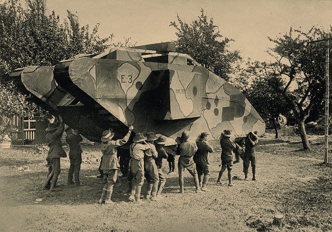 Работала служба маскировки так. Художники изучали и фотографировали защищаемый участок местности, в том числе и с самолетов. Потом придумывали различные мероприятия для камуфляжа наблюдательных постов, пулеметных и снайперских точек, разрабатывали ложные цели и маскировали ориентиры. Порой строились целые ложные населенные пункты или, наоборот, уничтожались привычные для артиллерийских разведчиков немцев «опорные» предметы. Например, в 1917 году под покровом ночи французы втихаря переместили аж на 400 метров часовню в Бове. Надо полагать, проснувшиеся утром германские офицеры были очень недовольны полученными накануне данными прицельных параметров своих батарей и срочно скорректировали их «по фактически наблюдаемому» положению часовни. В результате двое суток пушки лупили в белый свет как в копеечку. Отдельной темой была борьба со снайперами. Мастерские выклеивали из папье-маше фальшивые головы солдат. Поднимая их над бруствером окопа, можно было спровоцировать противника на выстрел и раскрыть его позицию, а уж потом накрыть снайпера огнем артиллерии или же выследить и подстрелить из винтовки – дело техники.