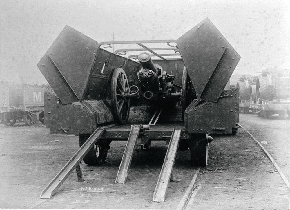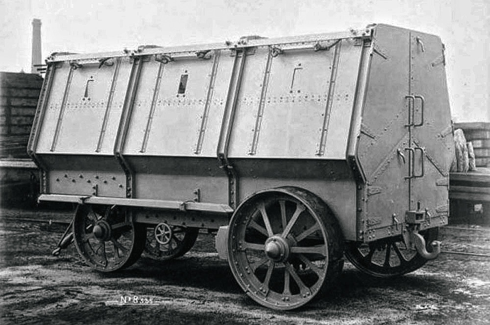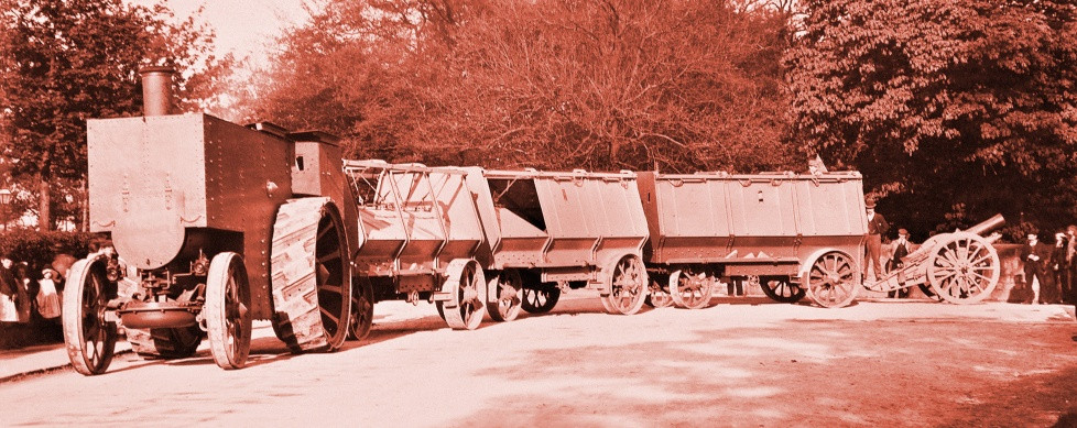 Успешный опыт создания бронированных «вагенбургов» в Великобритании попробовали применить в новой реальности. Поскольку изрытое воронками и траншеями поле боя далеко не то же самое, что африканская саванна, новые «наземные поезда» должны были ездить уже на гусеницах. Правда, эпоха дредноутов дала им и новое название – «наземные корабли».
