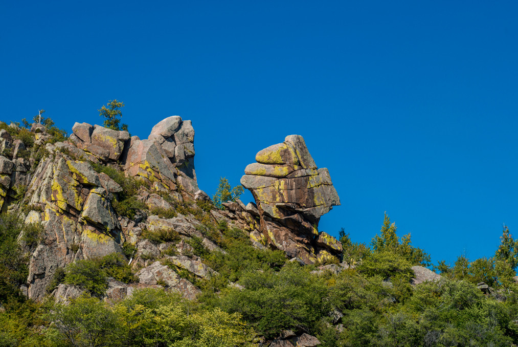 Еще один интересный туристический объект Даурии — массив Адон-Челон, разрушенные временем останцы гор. Название массива переводится с монгольского как «каменный табун». Гранитные скалы имеют причудливую форму: одни напоминают слона или кошку, другие — богатырей, юрту или дракона. Самая высокая точка Адон-Челона и всего заповедника — гора Цаган-Обо, место поклонения буддистов.