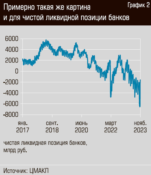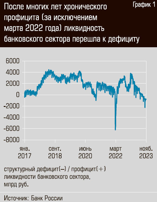Банковский сектор перешел в состояние дефицита ликвидности — это вызвано возвратом к профициту федерального бюджета и агрессивным циклом повышения ключевой ставки.