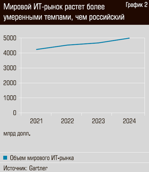 Участники рос сийског о ИТ-рынка начали говорить о снижении темпов его развития. Последние три года сегмент разработки и внедрения ИТ-продуктов и решений в РФ рос на внушительные 25–40% в год. Мировой ИТ-рынок в это же время показывал ежегодный рост на скромные 5%.