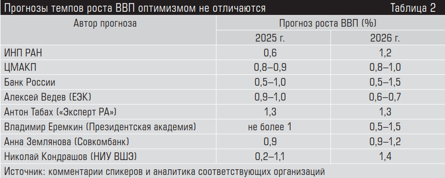 Если рисовать состояние экономики широкими мазками, то этот год проходит под знаком паузы — производственной и инвестиционной. Удержаться от рецессии удалось, но замедление продолжается. По прогнозам, в целом за 2025 год мы вполне можем выйти на рост ВВП, близкий к 0,9%, а в 2026-м — от 0,5 до 1,5%. Что важно, в прогнозы на будущий год заложено умеренное снижение ключевой ставки, и если ЦБ по какой-то причине будет тянуть с этим, то рост может быть и меньше.