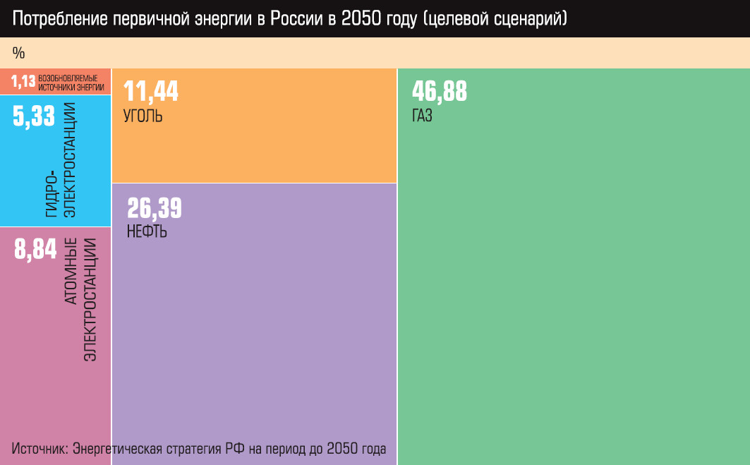 При этом, несмотря на рост доли возобновляемых источников в энергопотреблении, ископаемые виды топлива по-прежнему будут составлять основу мировой энергетики, как минимум до 2050 года, уверены авторы Стратегии, а физические объемы потребления нефти, газа и угля «будут сохраняться на текущем уровне или расти».