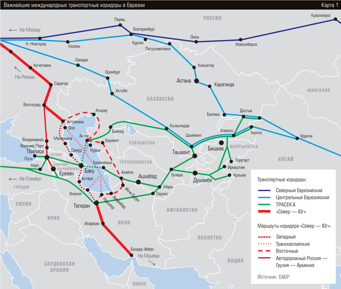 Традиционно основной акцент в развитии коридора «Север — Юг» делался на западный маршрут, даже несмотря на еще не закрытую 162-километровую прореху в железнодорожном сообщении на участке Решт — Астара в Иране: там грузы пока приходится возить фурами.