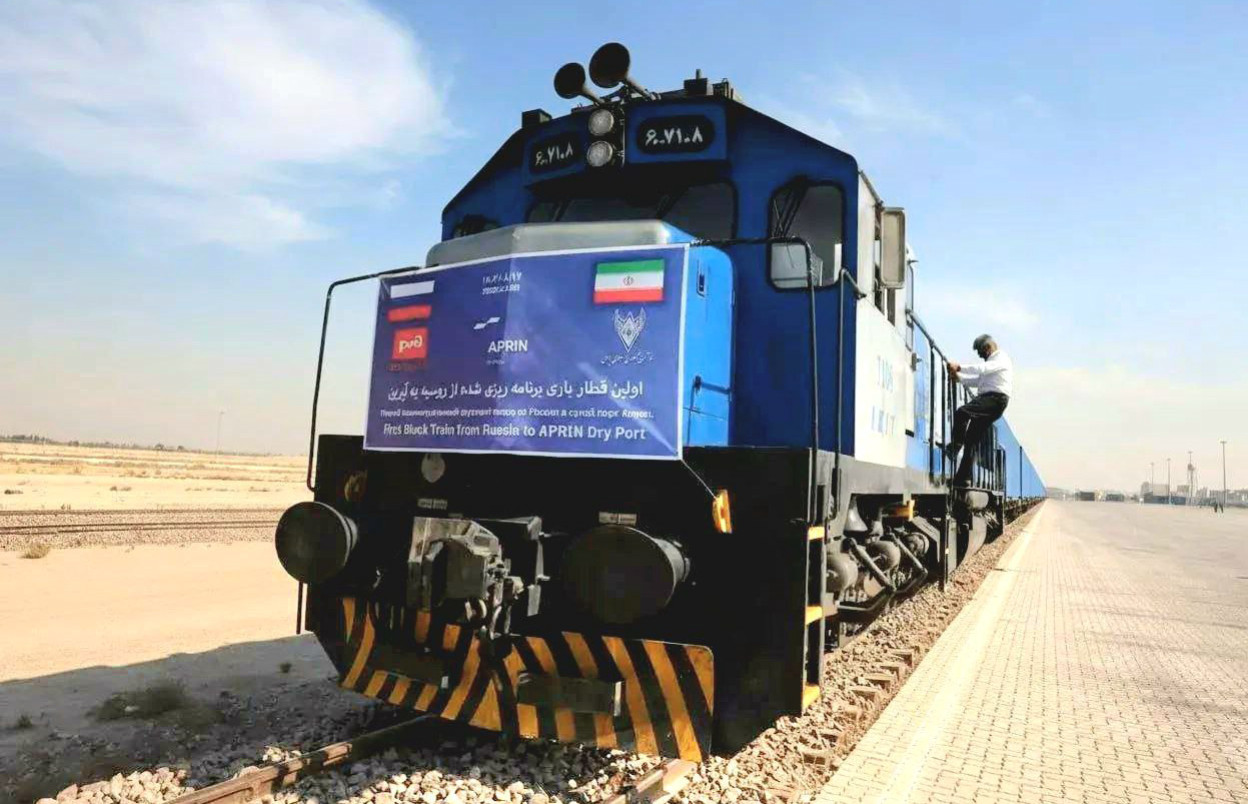 В сухой порт Априн под Тегераном прибыл первый грузовой поезд из России. Его путь пролегал по восточной ветке международного транспортного коридора «Север — Юг» (МТКСЮ) через Казахстан и Туркмению. Состав доставил в Иран 62 сорокафутовых контейнера (СФЭ) с бумагой, сульфатной целлюлозой и другими производными бумажной продукции; дорога заняла 13 дней.